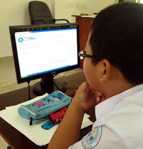 - Điểm mới trong năm nay là phần thi Trắc nghiệm trực tuyến Online, các em được lập tài khoản và làm bài thi trực tiếp trên mạng- trang website của PGD TP Thủ Dầu Một. Sau khi hoàn thành bài thi, kết quả sẽ lập tức có ngay và các em có thể xem kết quả chi tiết trả lời từng câu hỏi trước đó.