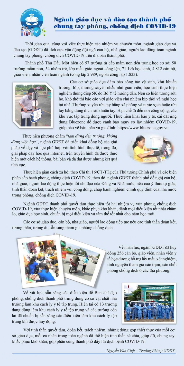 Ngành Giáo dục và Đào tạo thành phố chung tay phòng, chống dịch COVID-19