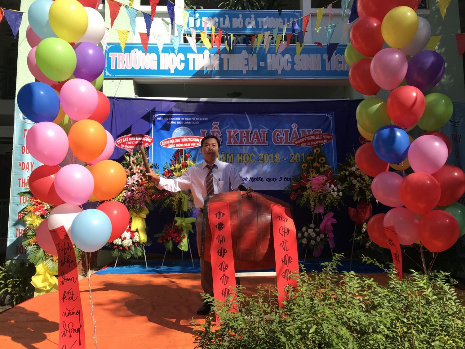 Sáng 5/9, học sinh Thành phố Thủ Dầu Một bước vào năm học mới. Chương trình khai giảng năm nay ở các trường tiếp tục được diễn ra với phần Lễ ngắn gọn, trang trọng và phần Hội sôi động, hấp dẫn, ấn tượng với các em học sinh. Năm học 2018 - 2019, Ngành Giáo dục và Đào tạo Thành phố tiếp tục đón nhận sự quan tâm của Lãnh đạo Thành phố, thể hiện rõ nét qua việc Lãnh đạo Sở Giáo dục, Thành ủy - Hội đồng nhân dân - Ủy ban nhân dân - Ủy ban Mặt trận Tổ quốc Thành phố tiếp tục đi đến các trường tham dự Lễ Khai giảng và động viên đội ngũ thầy cô giáo, các em học sinh.