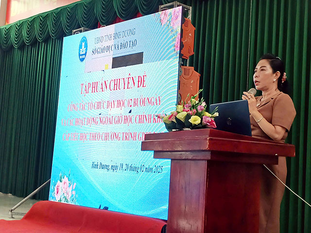 Thực hiện theo Công văn số 409/SGDĐT-GDMNTH ngày 12/02/2025 của Sở Giáo dục và Đào tạo Bình Dương về việc triệu tập đại biểu tham dự tập huấn “Công tác tổ chức dạy học 02 buổi/ngày và các hoạt động ngoài giờ học chính khóa cấp Tiểu học theo Chương trình GDPT 2018”. Trong hai ngày 19 và 20/02/2025, Sở GDĐT tỉnh Bình Dương đã tổ chức tập huấn cho tất cả các trường trong tỉnh tại Trường Tiểu học Phú Tân.